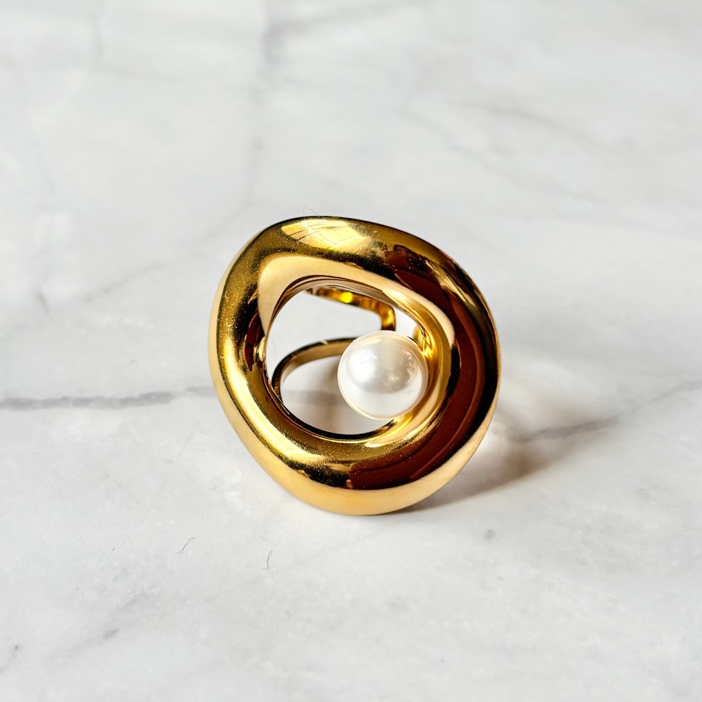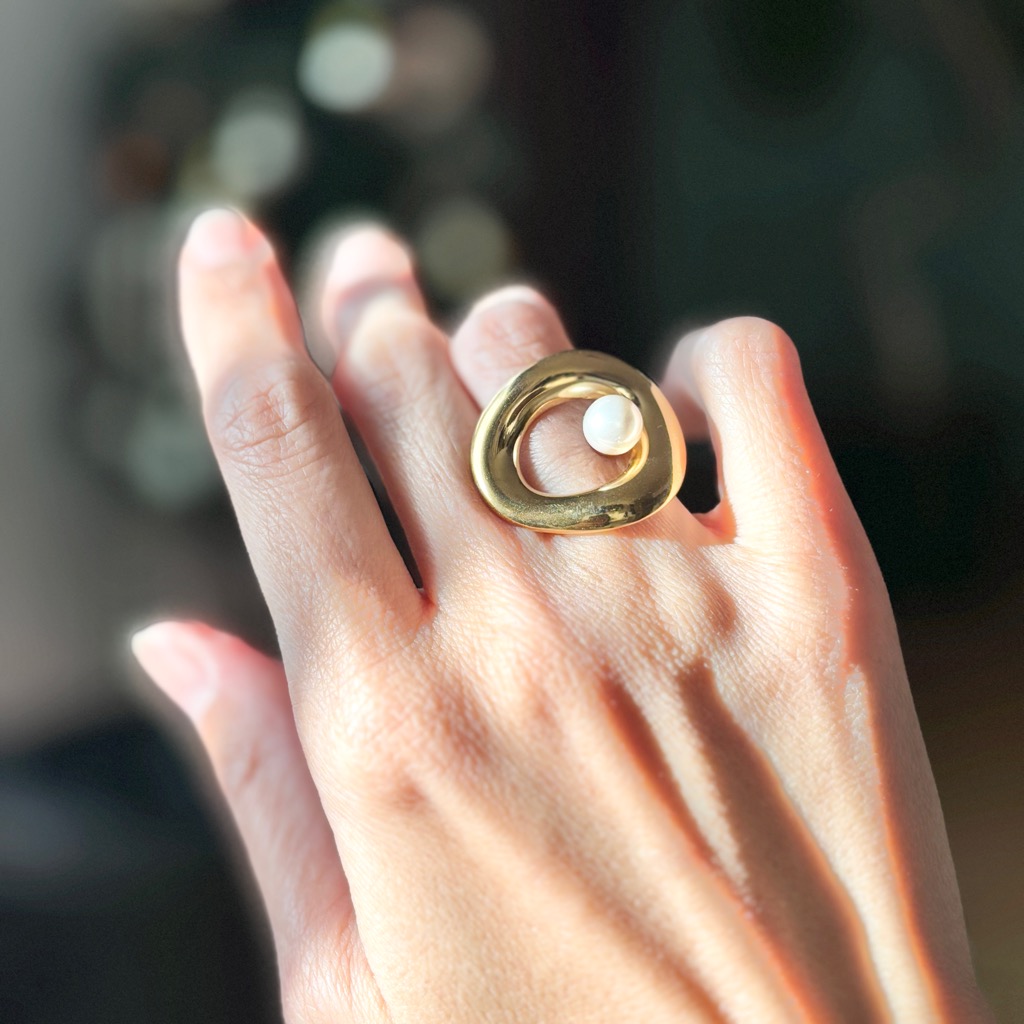 アシンメトリーがおしゃれな大ぶりのデザインリング